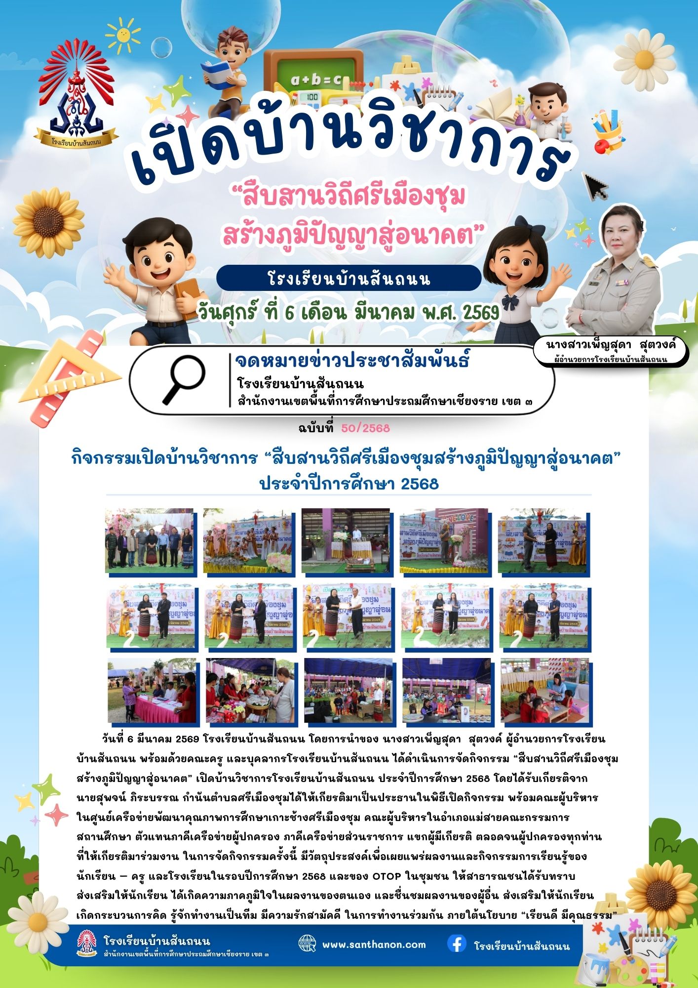 วันที่ 10 กุมภาพันธ์ 2569 โรงเรียนบ้านสันถนน สำนักงานเขตพื้นที่การศึกษาประถมศึกษาเชียงราย เขต 3 โดยการนำของ นางสาวเพ็ญสุดา สุตวงค์ ผู้อำนวยการโรงเรียนบ้านสันถนน คณะครูบุคลากรทางการศึกษา โรงเรียนบ้านสันถนน ได้จัดกิจกรรมอบเกียรติบัตรโครงการการศึกษาเพื่อต่อต้านการใช้ยาเสพติดในเด็กนักเรียน ( D.A.R.E. ) ให้กับนักเรียนชั้นประถมศึกษาปีที่ 5 โดยได้รับเกียรติจาก พ.ต.ท.พิเชษฐ์ ลาพิงค์ สวป.สภ.เกาะช้าง ...