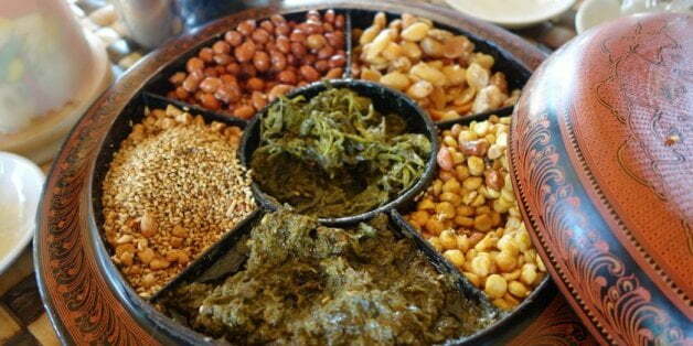 และผักต่างๆลักษณะของหล่าเพ็ดคล้ายกับเมี่ยงคำของไทย แต่ใช้ใบชาแทนใบพลู