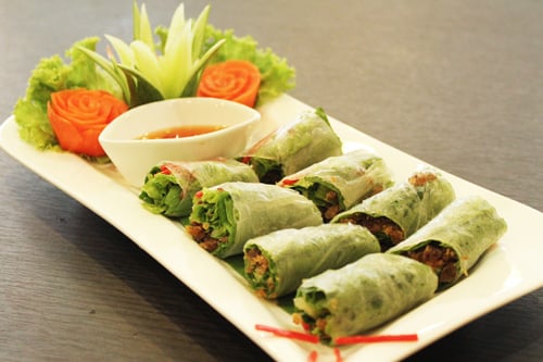 เป็นอาหารเวียดนามยอดนิยมที่ประกอบด้วยไส้ที่ทำจากเนื้อหมู กุ้ง เส้นหมี่ และผักสด ห่อด้วยแผ่นแป้งบางๆ ที่ทำจากข้าวเจ้า