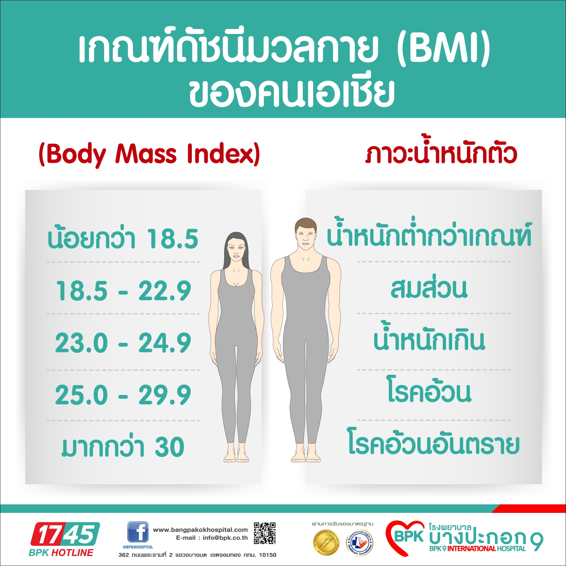 ค่า BMI คือค่าดัชนีที่ใช้ชี้วัดความสมดุลของน้ำหนักตัว (กิโลกรัม) และส่วนสูง (เซนติเมตร) ซึ่งสามารถระบุได้ว่า ตอนนี้รูปร่างของคนคนนั้นอยู่ในระดับใด ตั้งแต่อ้วนมากไปจนถึงผอมเกินไป