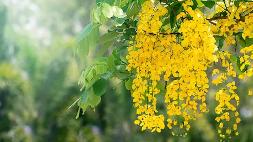 มีลักษณะเป็นช่อสีเหลืองสดสวยงาม บานสะพรั่งในช่วงเดือนกุมภาพันธ์ถึงพฤษภาคม ดอกราชพฤกษ์เป็นสัญลักษณ์ของความเจริญรุ่งเรือง ความปัญญา และความเฉลียวฉลาด