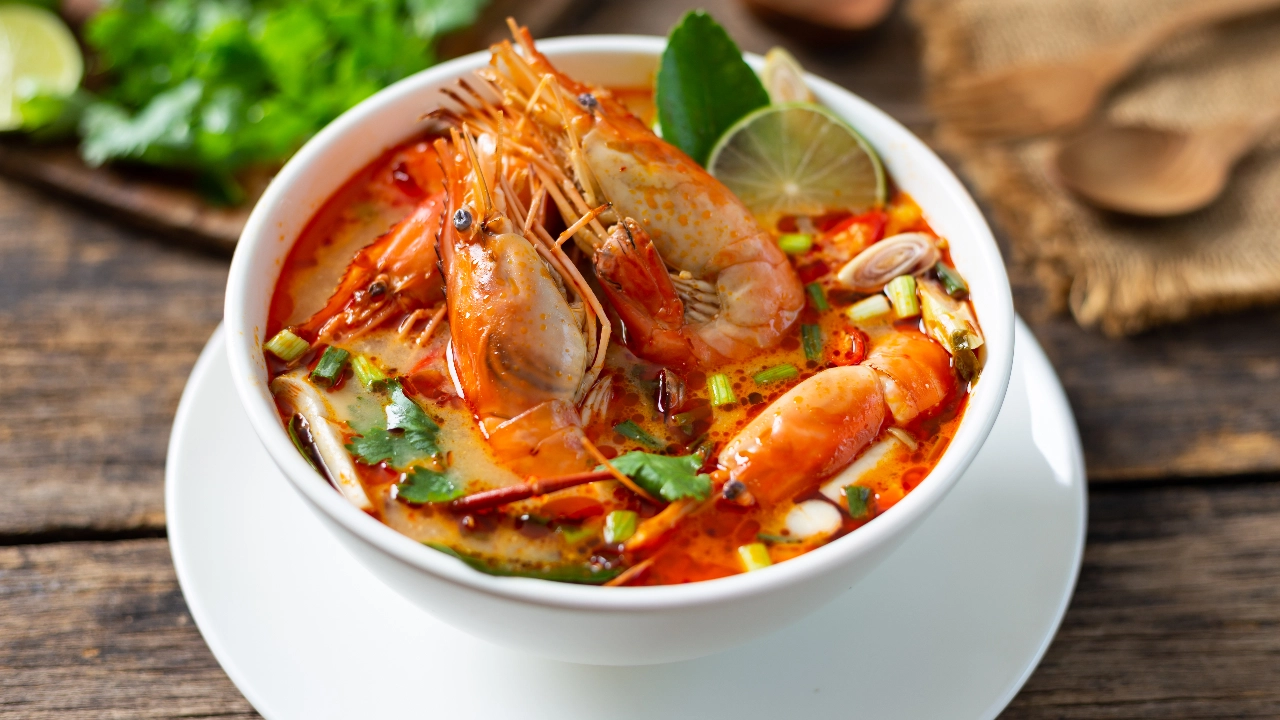ต้มยำกุ้งเป็นซุปที่มีรสชาติเผ็ดร้อน เปรี้ยว และมีกลิ่นหอมของเครื่องต้มยำ เช่น ตะไคร้ ใบมะกรูด ข่า และพริก นอกจากนี้ อาหารไทยอื่นๆ ที่ได้รับความนิยมและเป็นที่รู้จักในระดับนานาชาติ