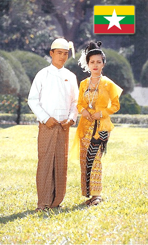 การแต่งกายของพม่า การแต่งกายของพม่านั้นมีรูปแบบที่หลากหลายขึ้นอยู่กับเชื้อชาติ, สภาพภูมิศาสตร์, สภาพภูมิอากาศ, ประเพณีวัฒนธรรมของผู้คนในแต่ละภูมิภาคของประเทศพม่า การแต่งกายที่เป็นที่รู้จักอย่างกว้างขวางของชาวพม่าคือ